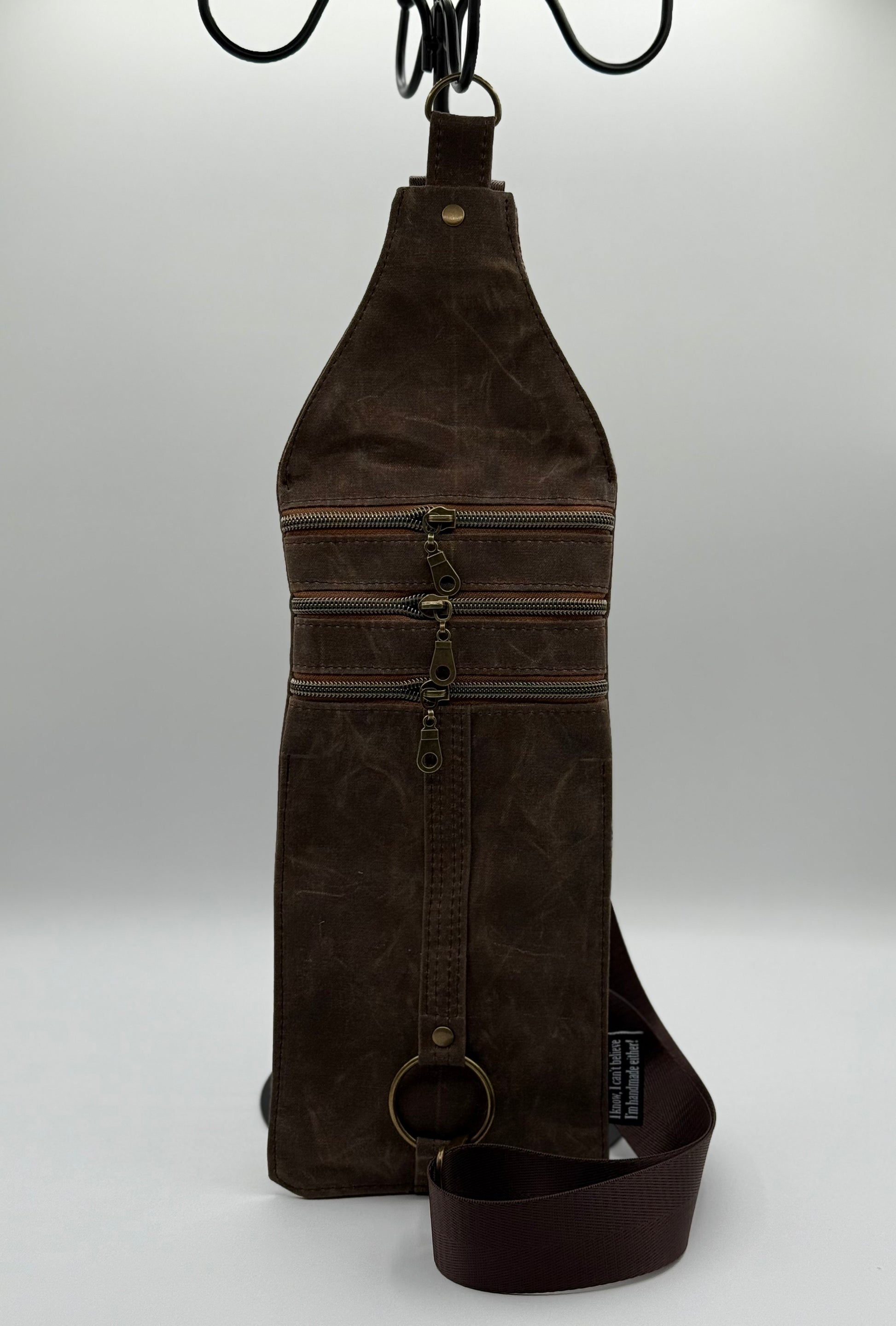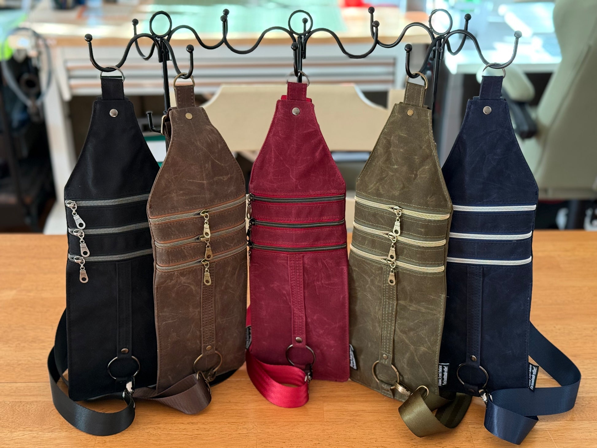 Tired of bulky bags? Meet your new everyday essential: The Triple Sling Bag!Those pictured are crafted from durable waxed canvas, this versatile bag offers a sleek, slim profile designed to be worn comfortably close to your body – perfect for under a jacket or coat. 🌧️💼Key Features:• Secure & Organized: Features a 4" top pocket and two additional 8" pockets to keep your essentials neatly tucked away.• Versatile Wear: The adjustable cross-body strap allows you to wear it comfortably across the front or back, adapting to your style and needs.• Built to Last: Made for durability and a stylish, timeless look. Available in a range of colors to match any outfit