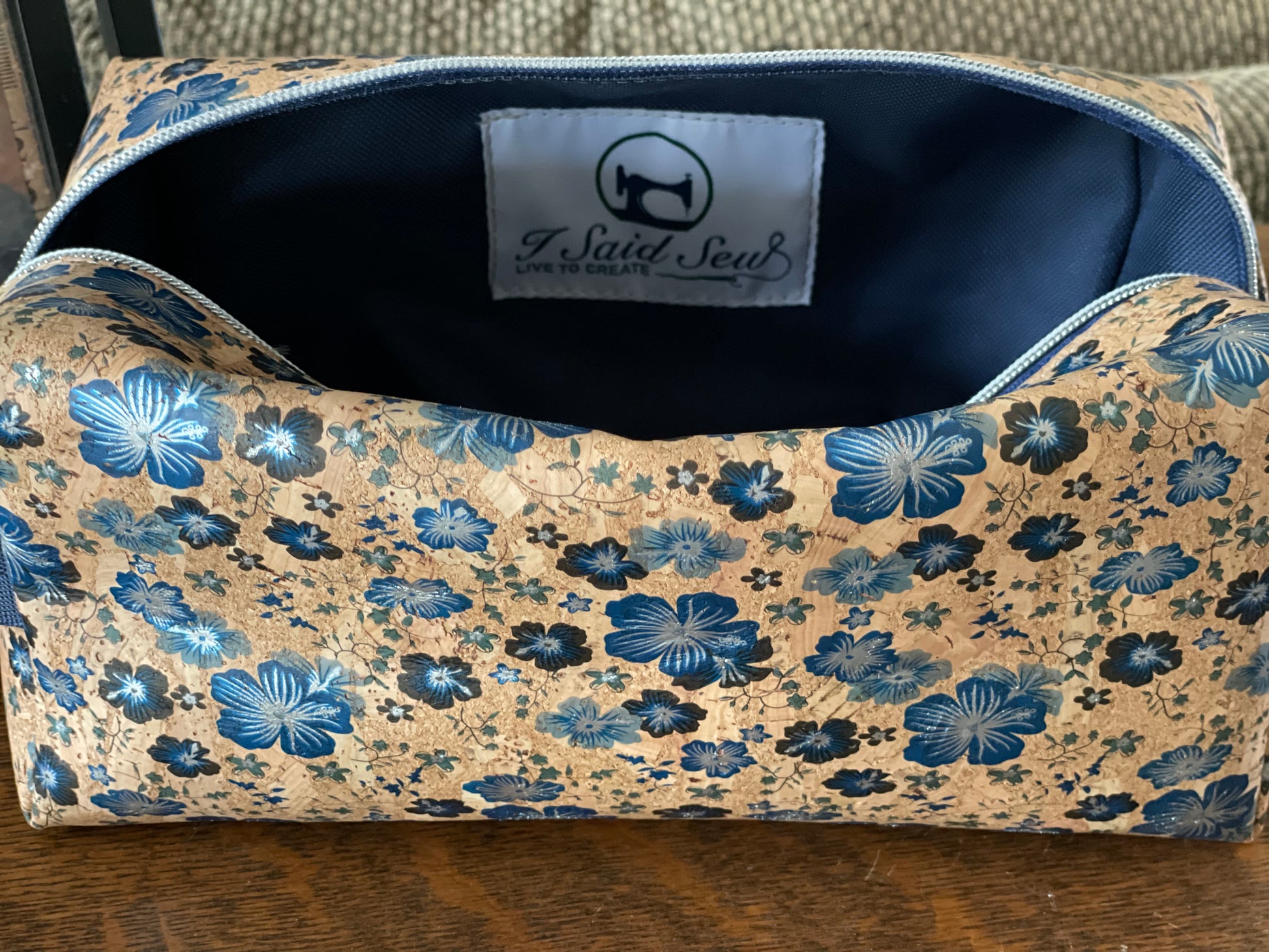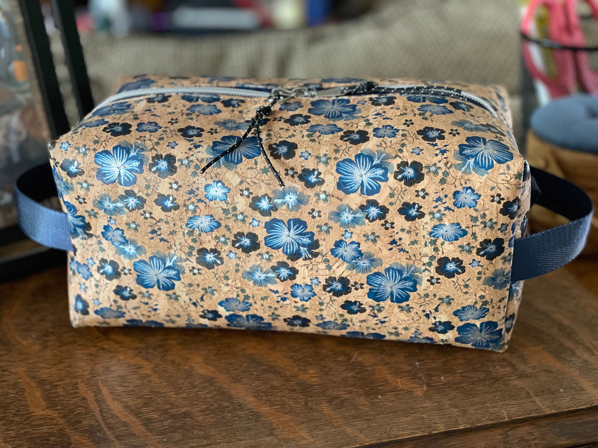 Blue Floral Cork Dopp Kit