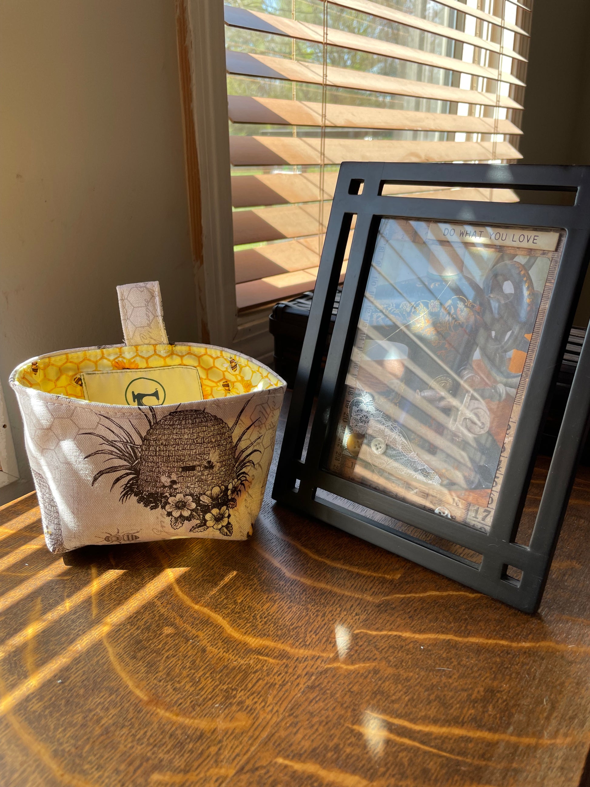 Boost your productivity with the Busy Bee Basket! This sturdy fabric basket features a delightful bee-themed canvas design, making it both practical and charming. Keep your essentials organized and add a touch of fun to your space. A must-have for busy bees!
