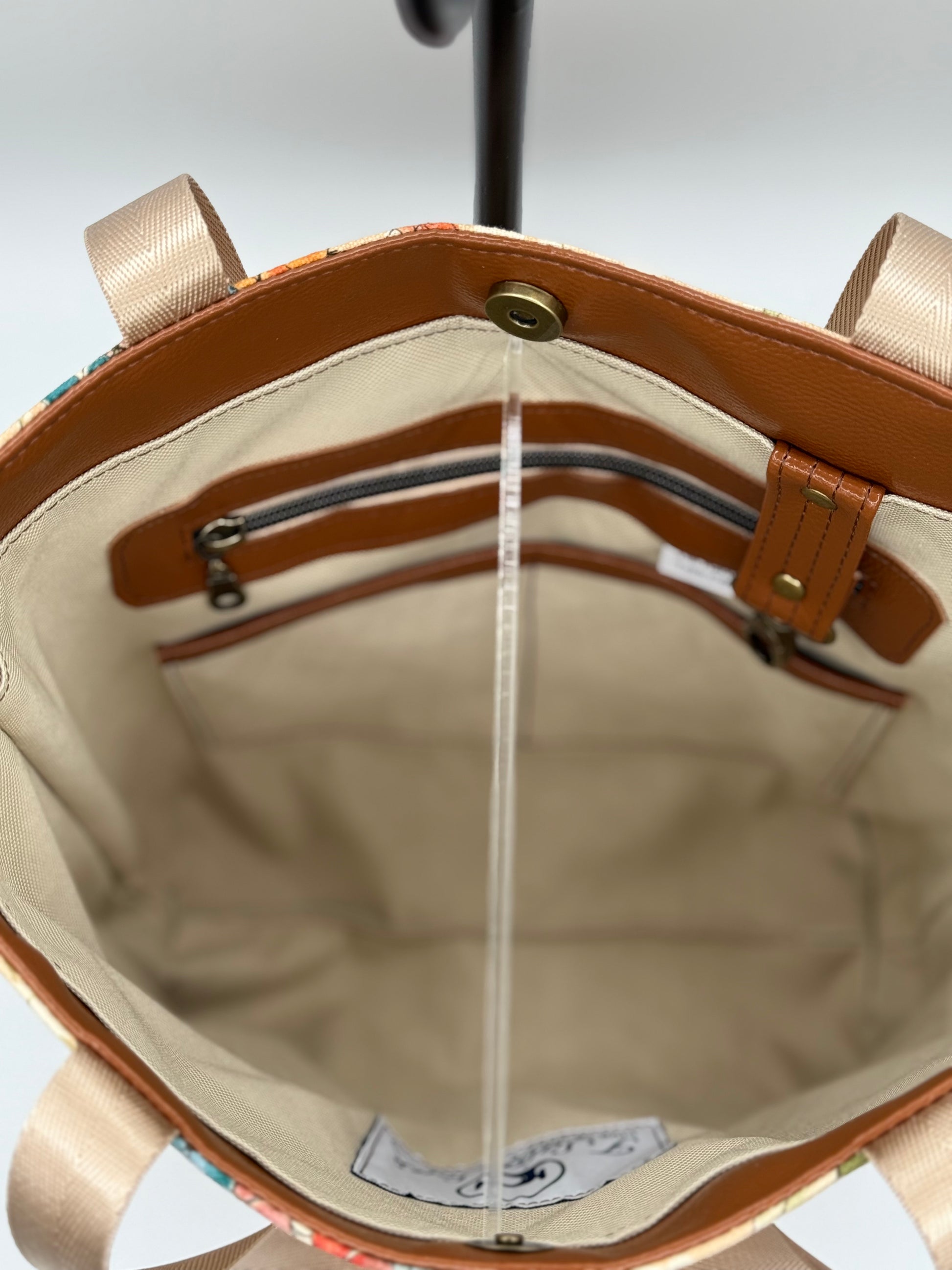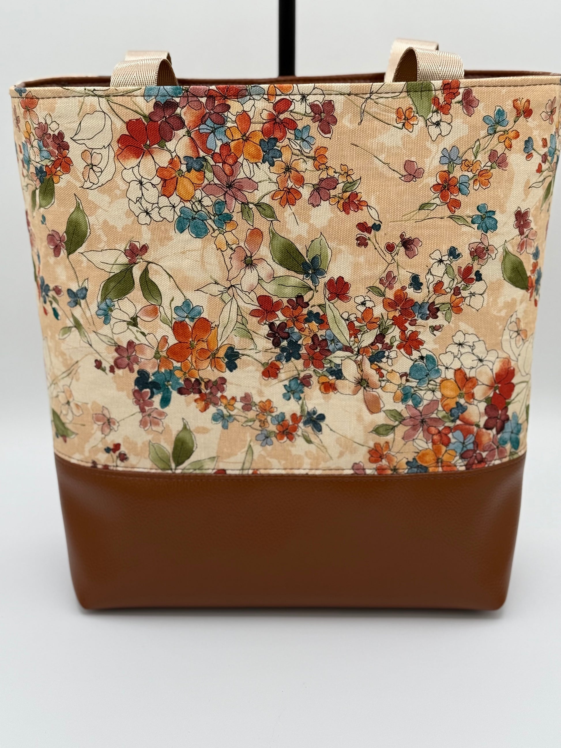 Tuesday Tote - Camel Vinyl and Fall Floral Canvas